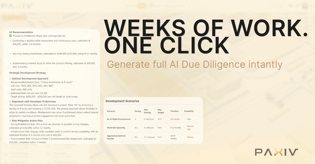 Complete parcel data, zoning analysis, and AI-generated feasibility reports in seconds. Investment-grade analysis without the consultant fees.