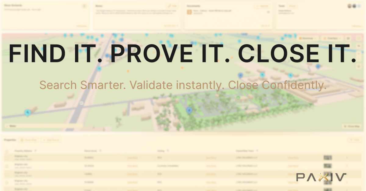 Most platforms just show data or listed properties. PAXIV is a complete workflow—search, analysis, feasibility reports, and deal management in one place.
